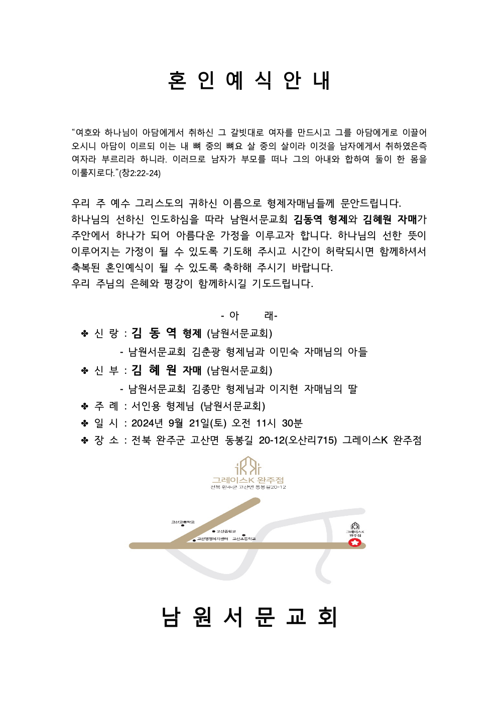 [기쁜소식] 김동역 형제, 김혜원 자매 (9월21일) 혼인예식