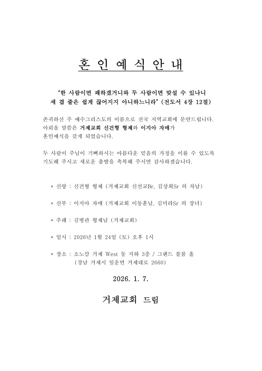 이병수 형제, 이지민 자매 - 1월 24일 (대구강북교회)