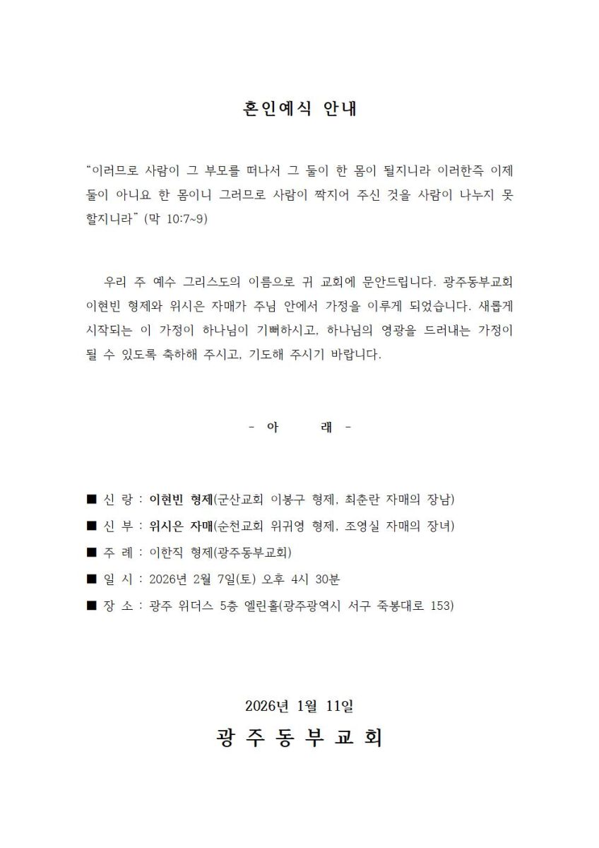 [기쁜소식] 이현빈형제, 위시은자매 (2월 7일)