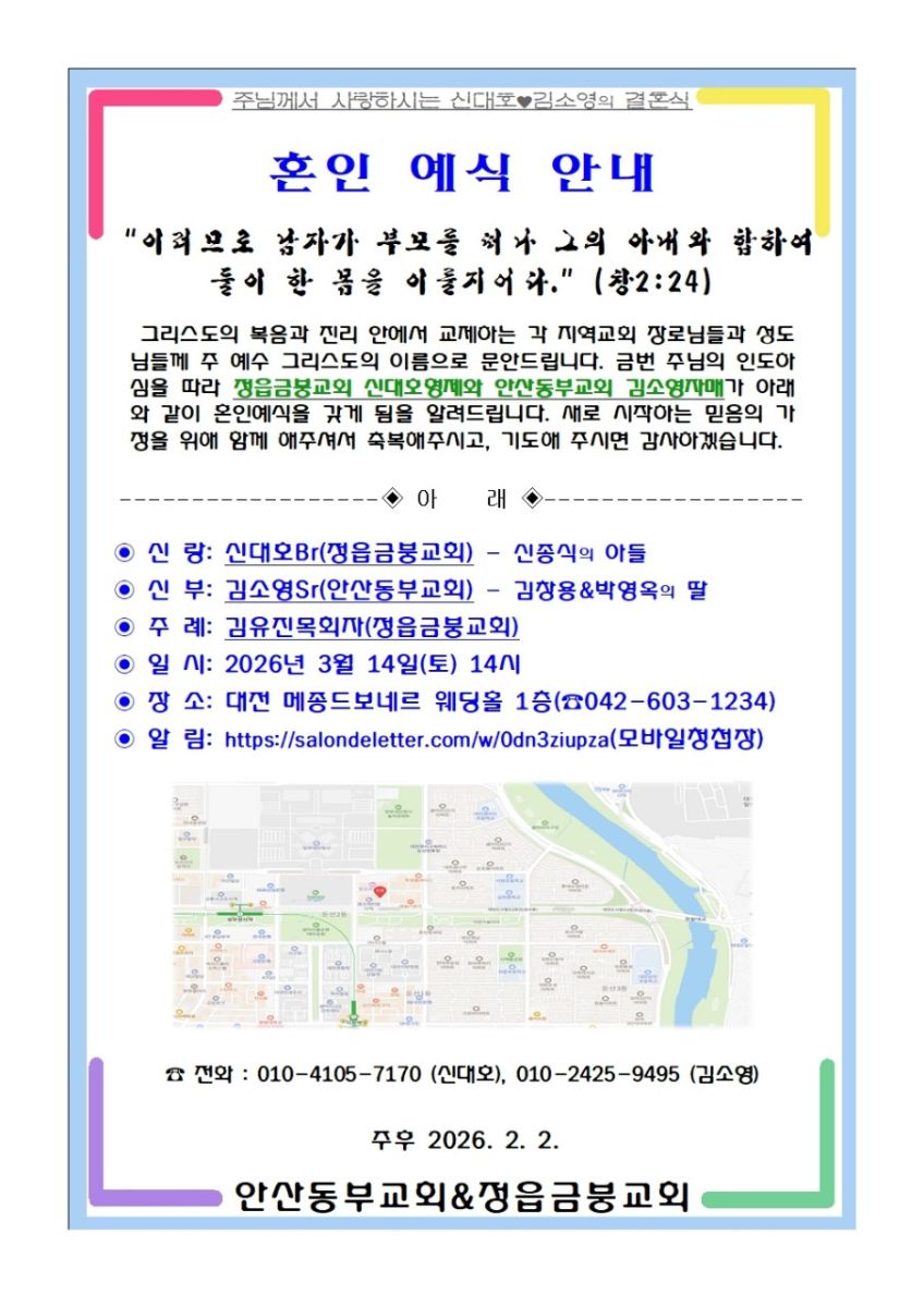 [기쁜소식] 신대호형제, 김소영자매 (3월 14일)