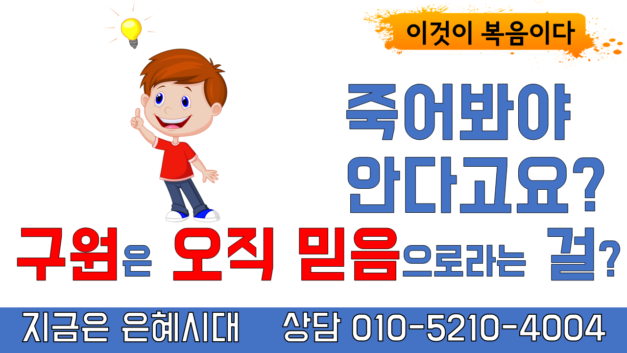 주제 : 죽어봐야 안다고요? 구원은 오직 믿음으로라는 걸?