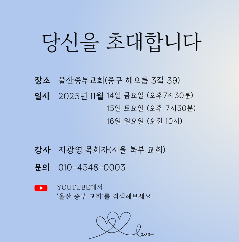 📍 장소 : 울산중부교회 (울산 중구 해오름3길 39)