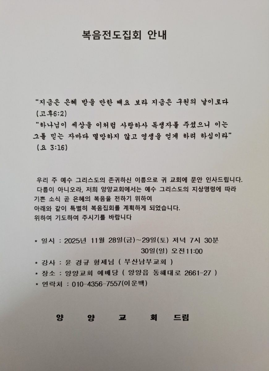 [복음집회] 양양교회 (28-30일)