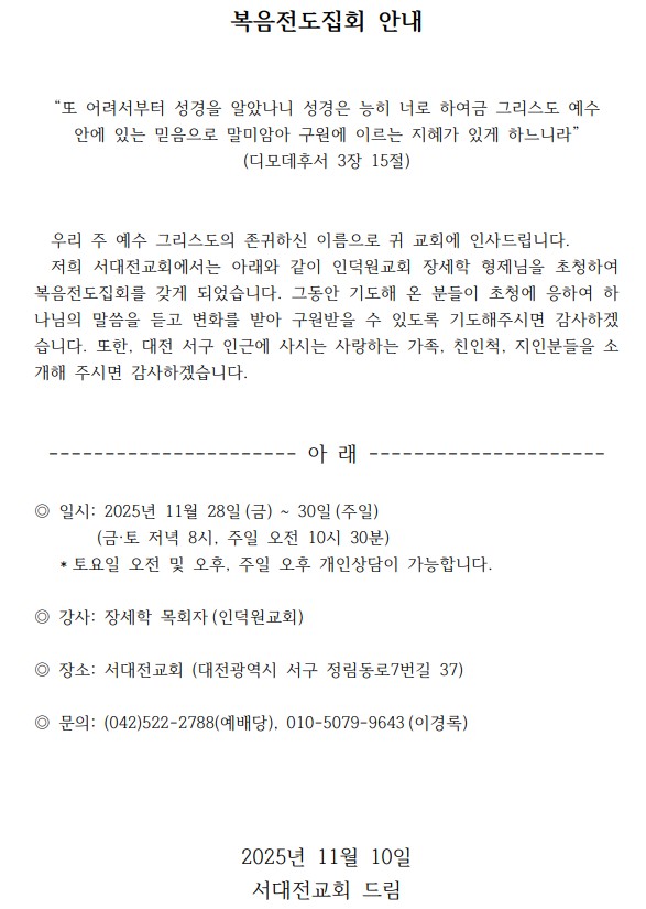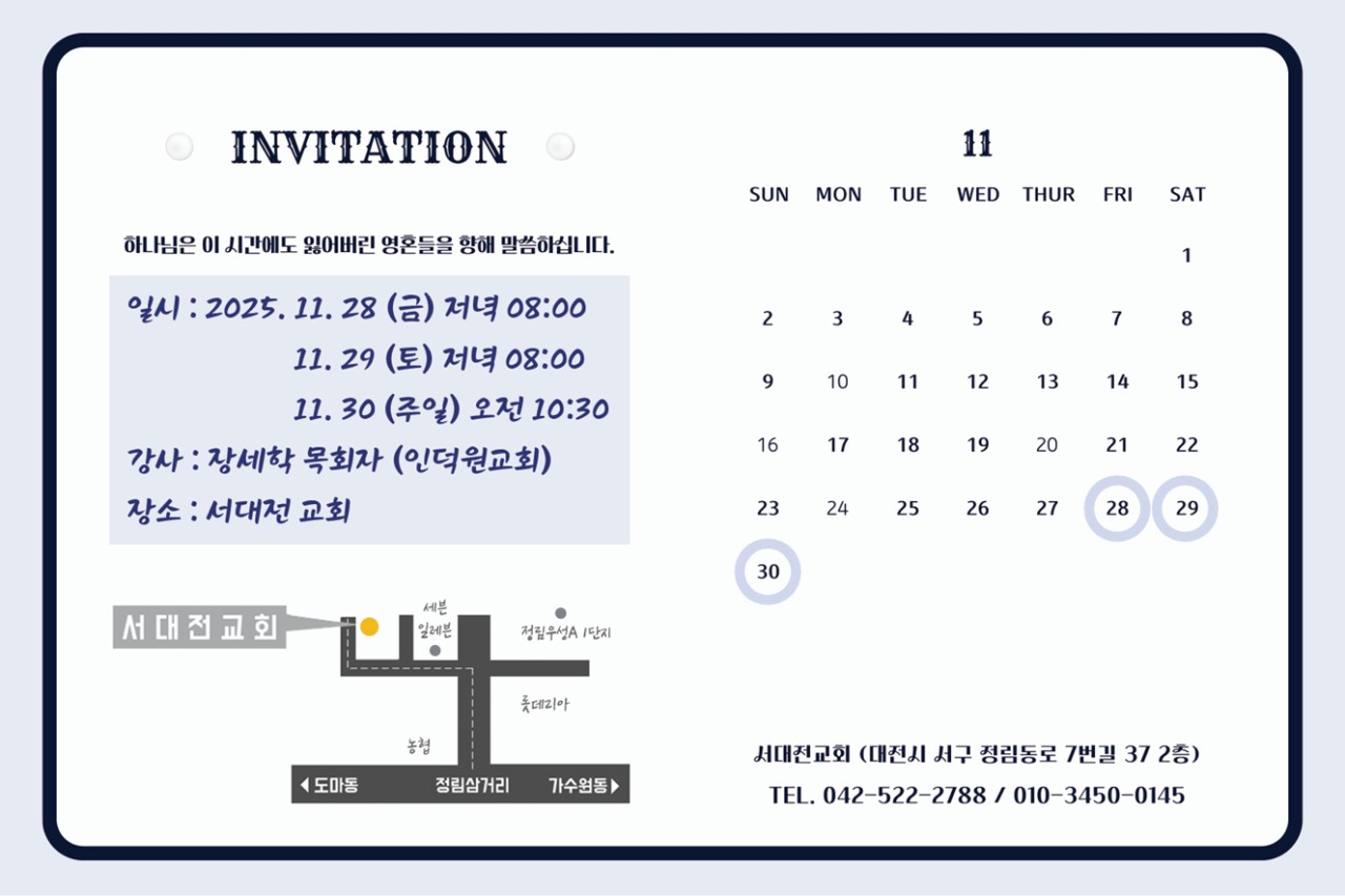 [복음집회] 서대전교회 (11월 28-30일)