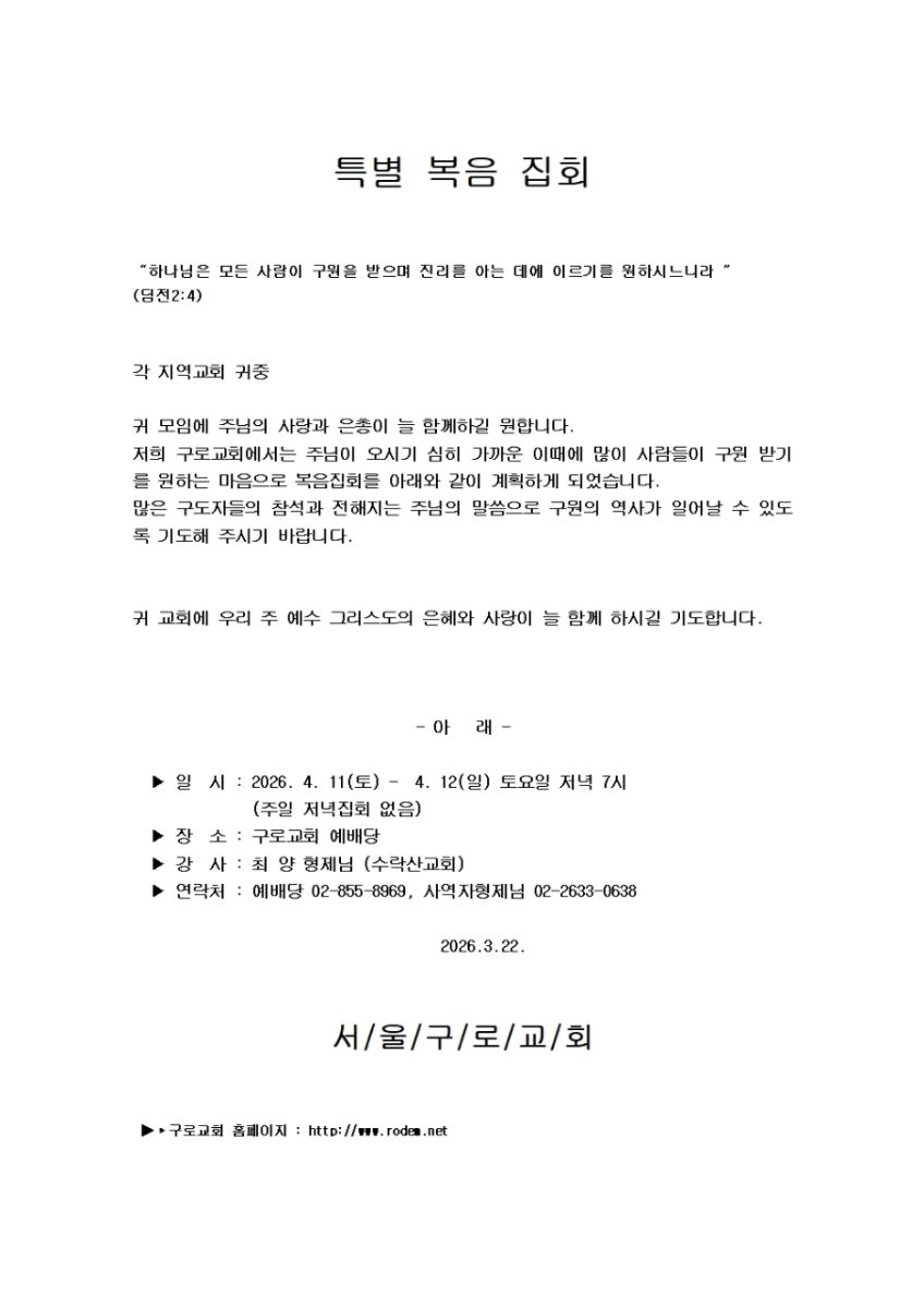 [복음집회] 구로교회 (4월 11-12일)