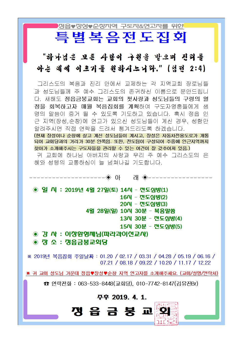 [복음집회] ♥정읍금붕교회 (4.27~28)