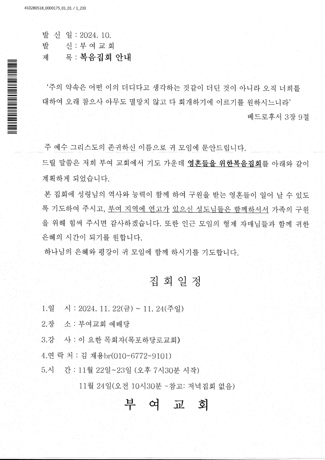 [복음집회] 부여교회 (11월 22-24일)