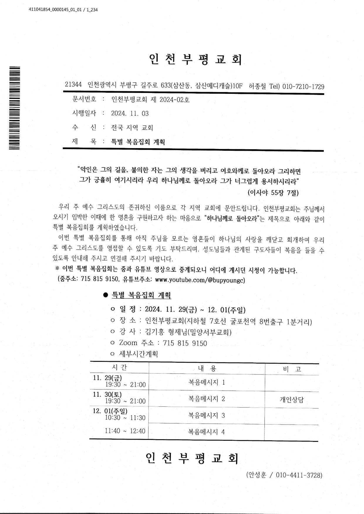 [복음집회] 인천부평교회 (11월 29-12월 1일)