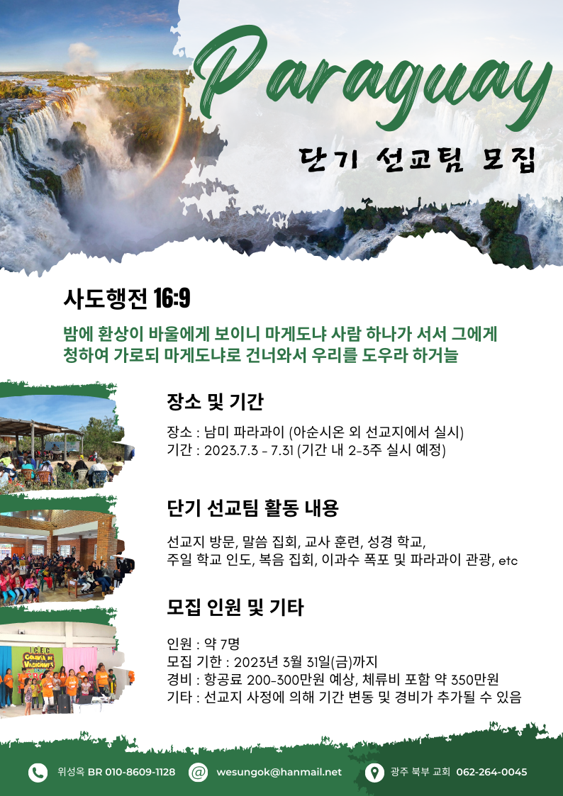 [선교] 2023년 파라과이 단기 선교팀 모집