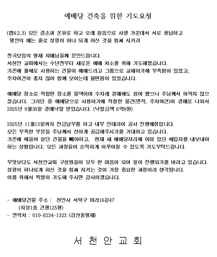 [지역교회] 예배당 건축을 위한 기도요청 (서천안교회)