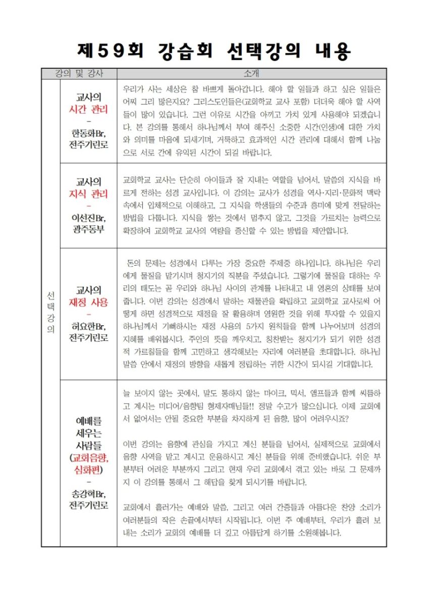 [강습과 세미나] 전북 교회학교 교사 강습회 (11월 9일)