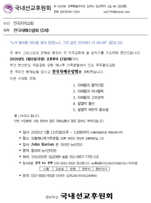[캠프와 수련회] 전국자매수양회 (1월 11-13일)