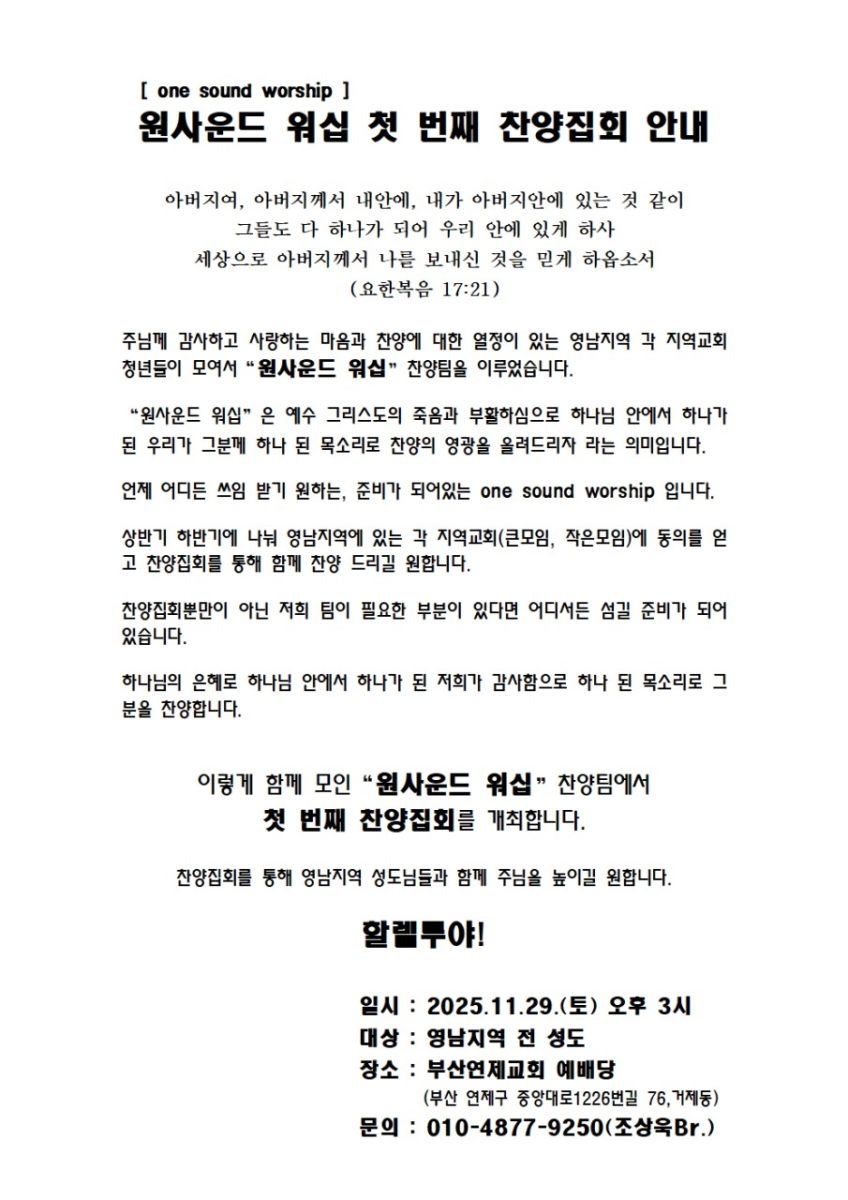 [강습과 세미나] 원사운드 워십 (11월 29일)