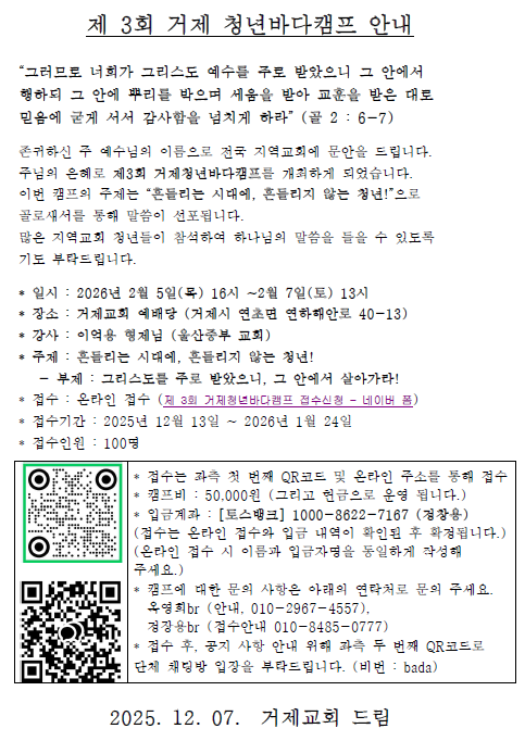 [캠프와 수련회] 거제 청년바다캠프 (2월 5-7일)