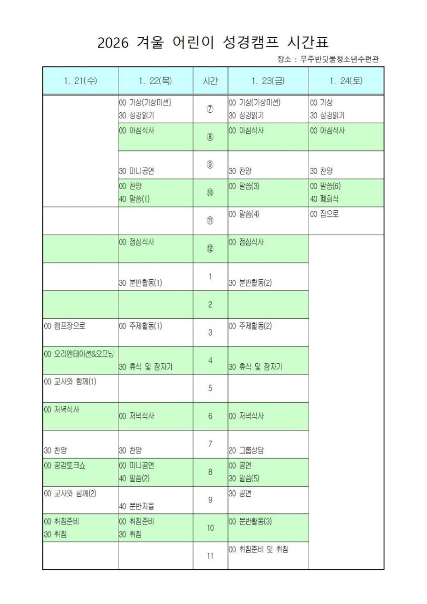 [캠프와 수련회] 겨울 어린이 성경캠프 (1월 21-24일)