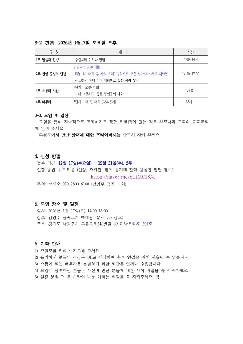 [강습과 세미나] 주안에서의 결혼을 위한 모임 (주결모) 안내