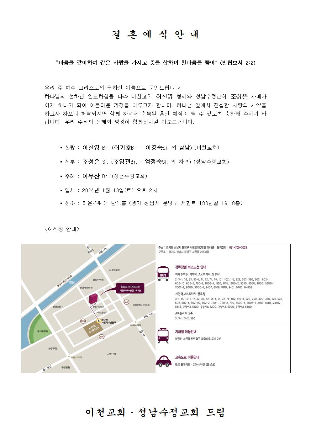 [기쁜소식] 이찬영 형제, 조성은 자매 (1월13일)