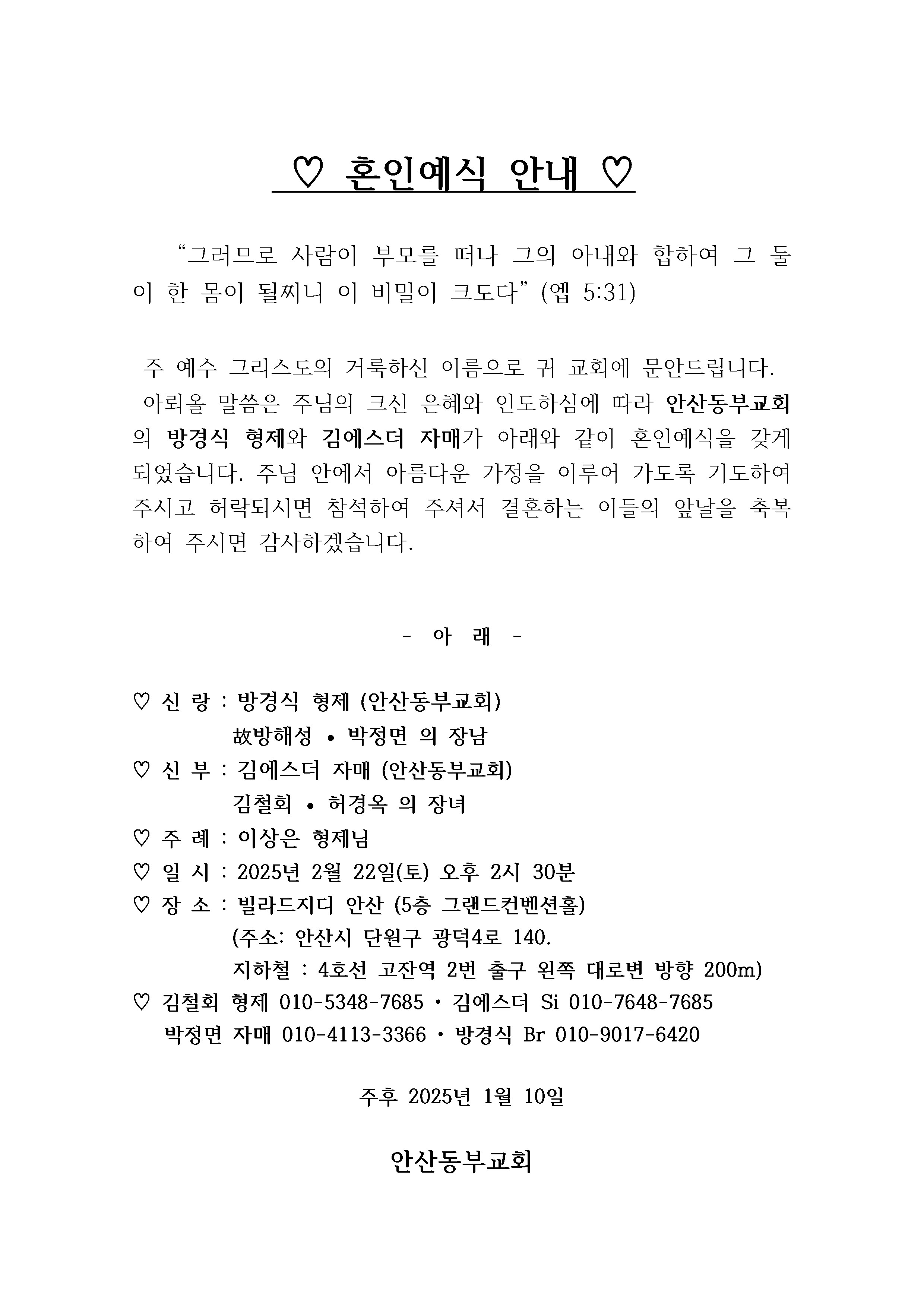 [기쁜소식] 방경식형제,김에스더자매(2월22일)