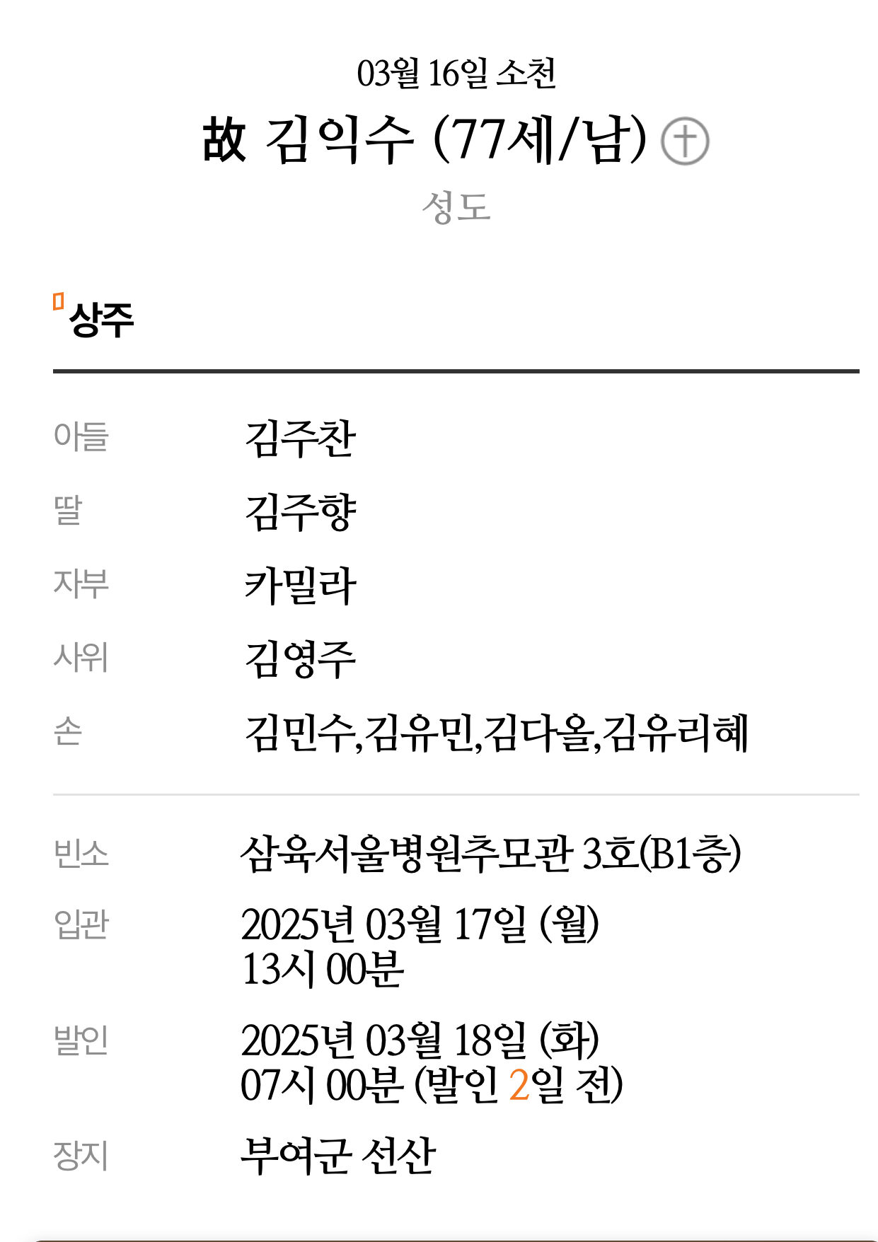 [소천소식] 김익수 형제님 소천 (3월 16일) - 노량진교회