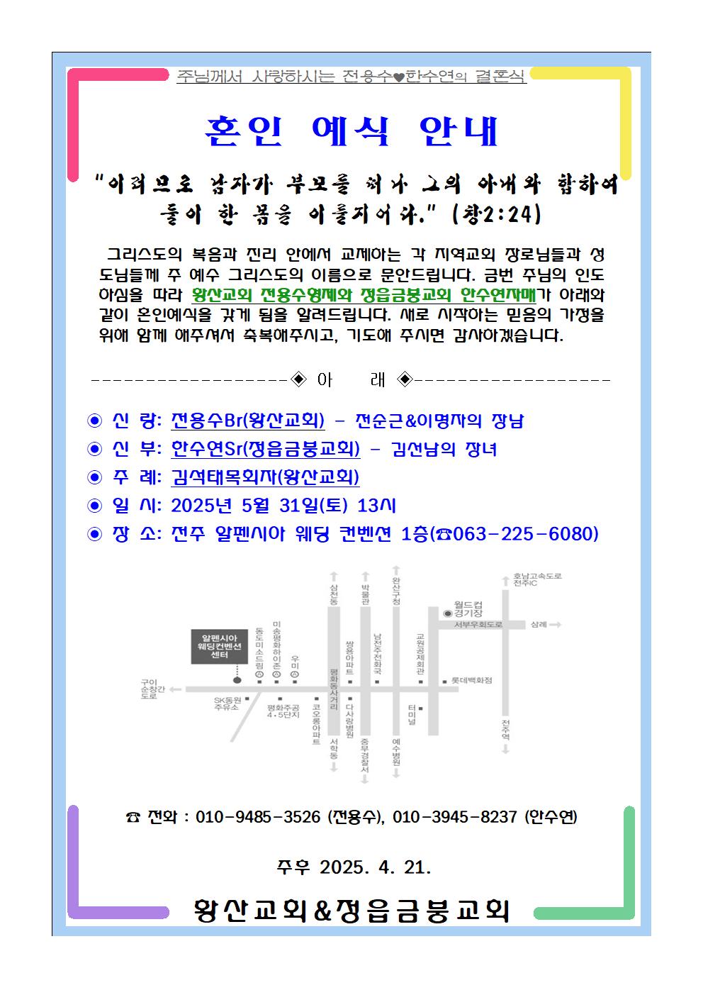 ■ 전용수Br&한수연Sr결혼식 안내