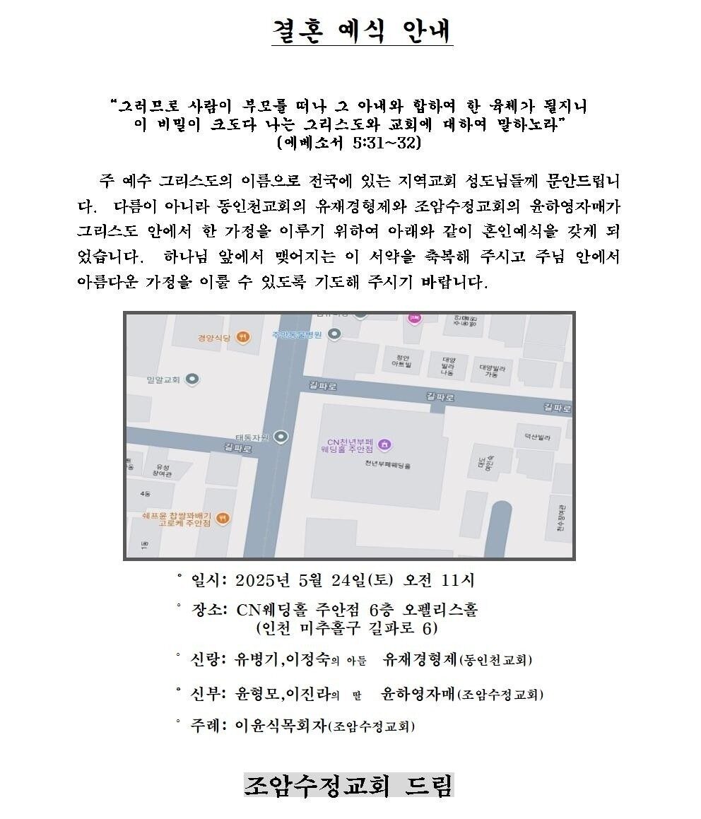 [기쁜소식] 유재경형제, 윤하영자매 (5월 24일)