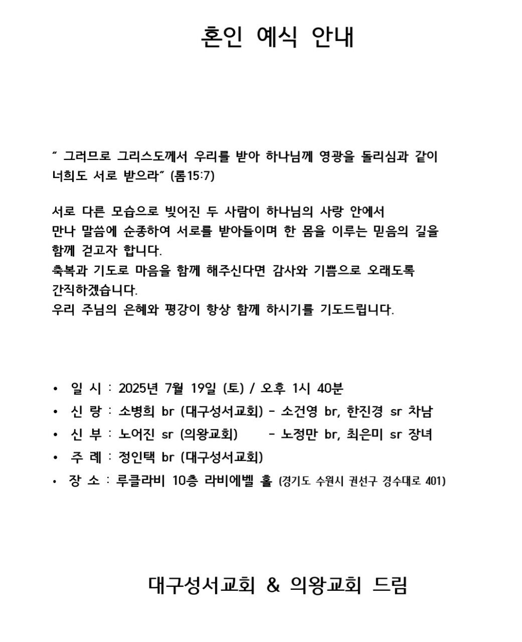 [기쁜소식] 소병희형제, 노어진자매 (7월 19일)