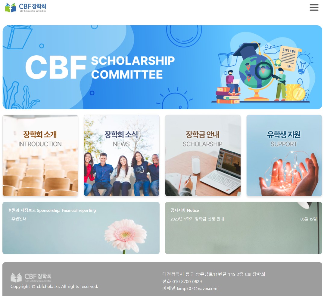 안녕하세요. CBF장학회에서 홈페이지가 시작되었습니다.