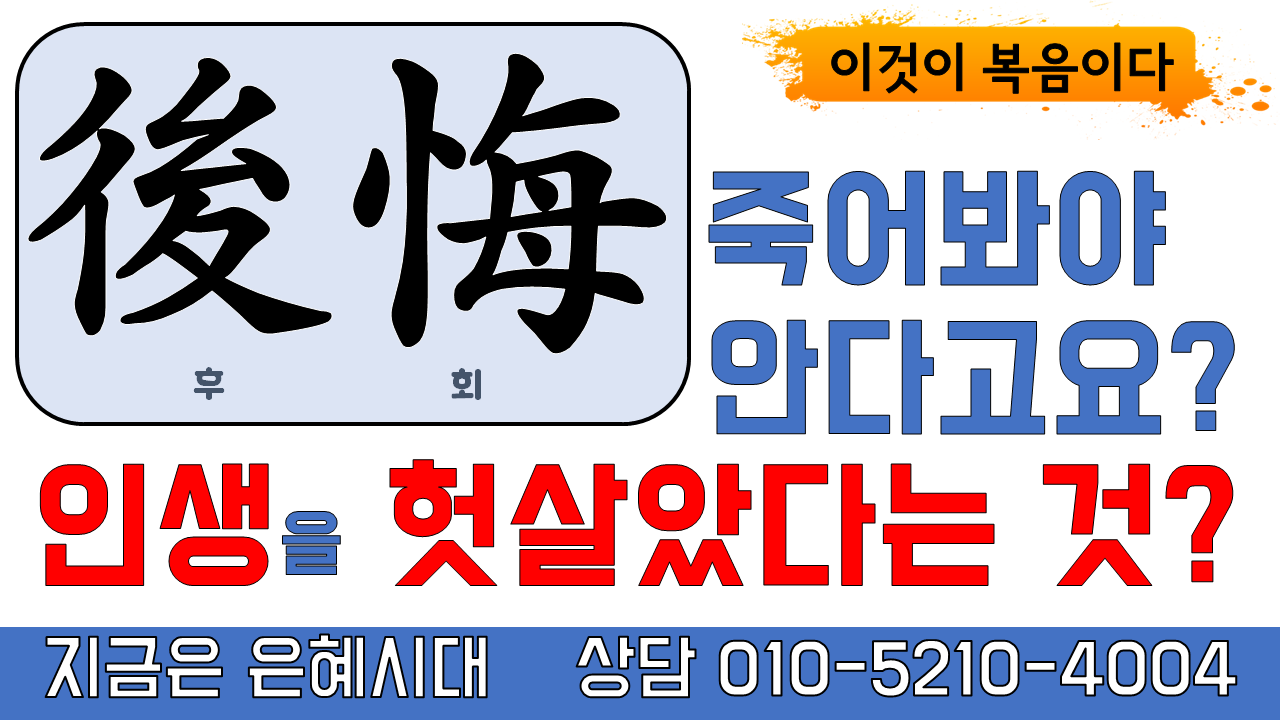주제 : 죽어봐야 안다고요? 인생을 헛살았다는 것?