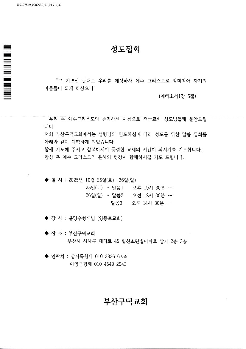 [성도집회] 부산구덕교회 (10월 25-26일)
