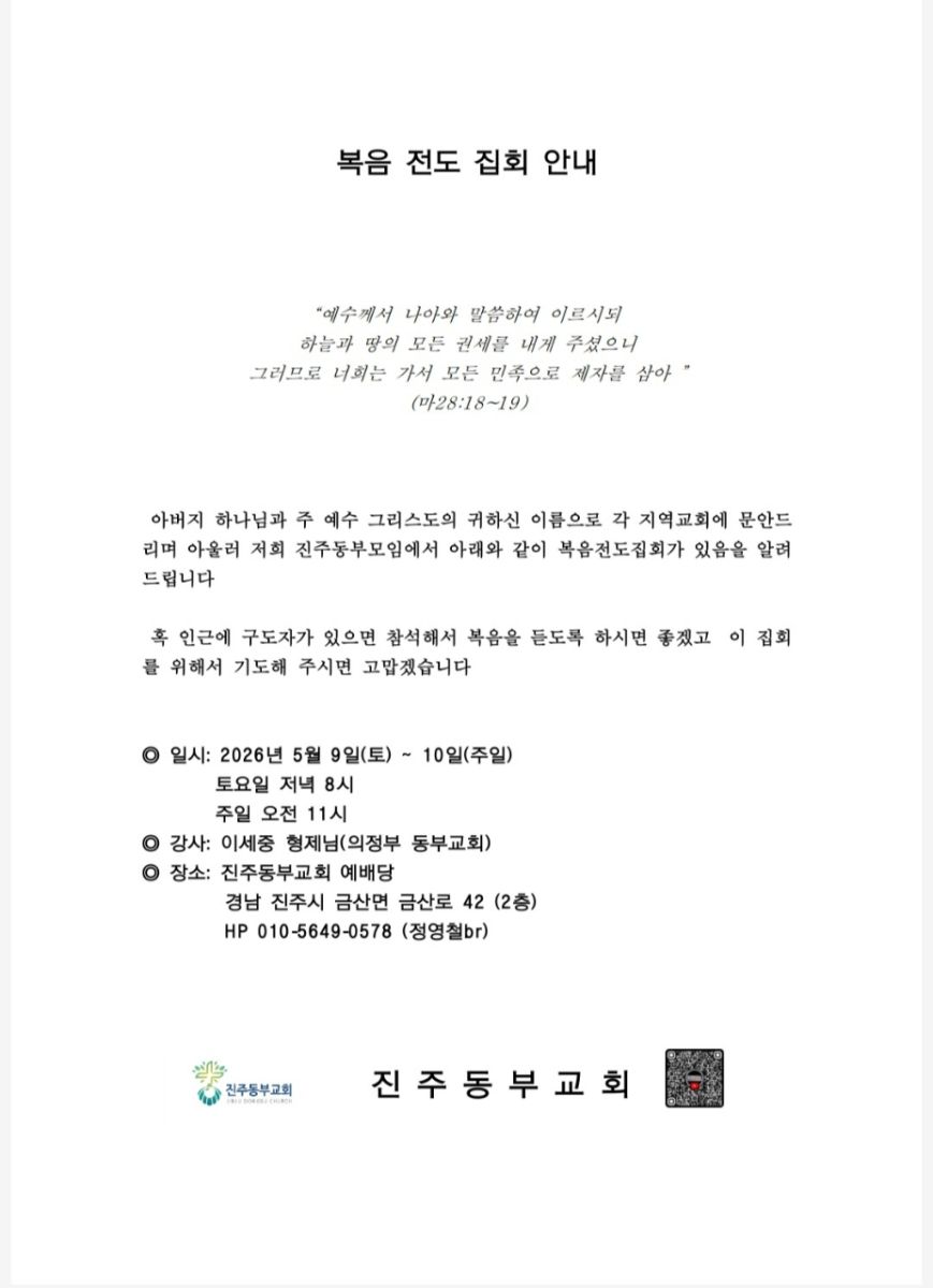 복음집회 및 94회 ‘지금은 은혜시대’ Live 방송