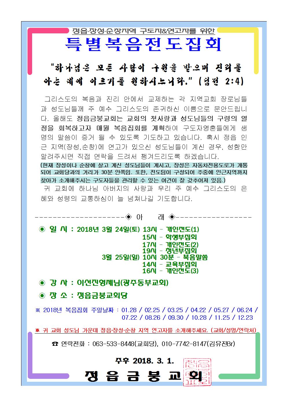 [복음집회] ♥정읍금붕교회 복음집회(3월)