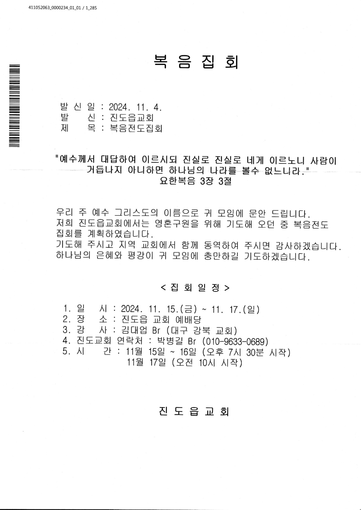 [복음집회] 진도읍교회 (11월 15-17일)