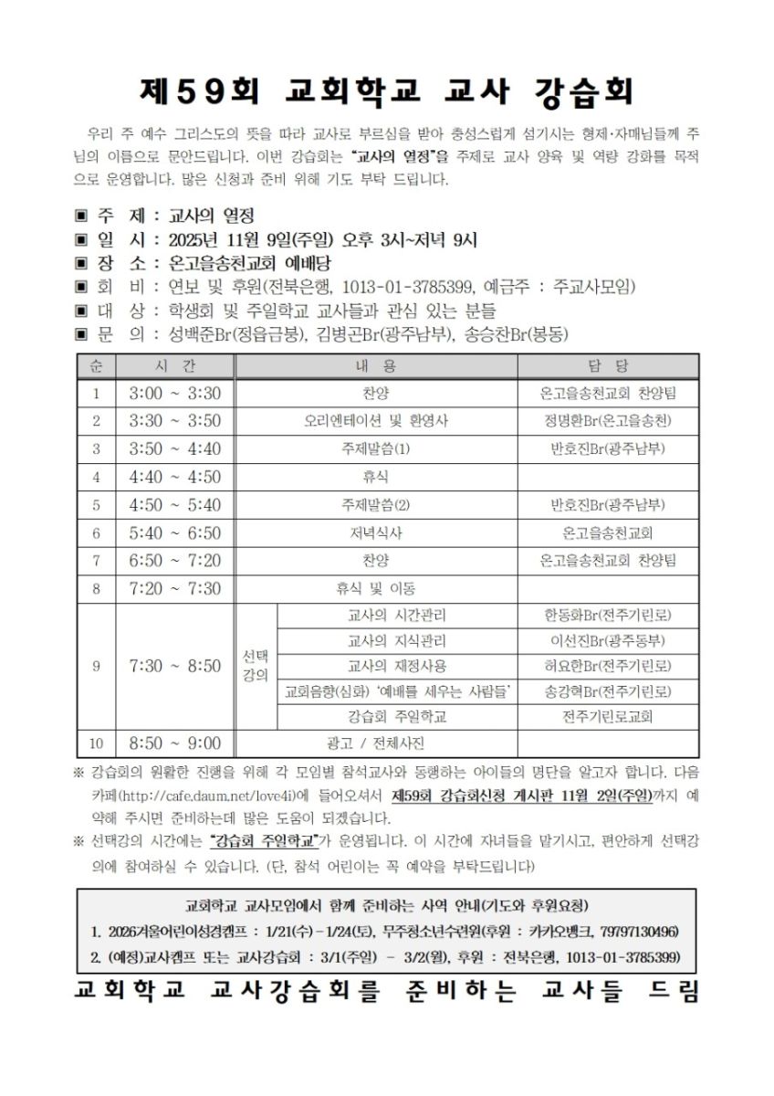 [강습과 세미나] 전북 교회학교 교사 강습회 (11월 9일)