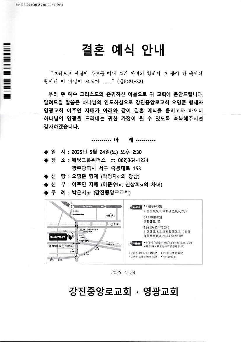 [기쁜소식] 오영준형제, 이주연자매 (5월 24일)