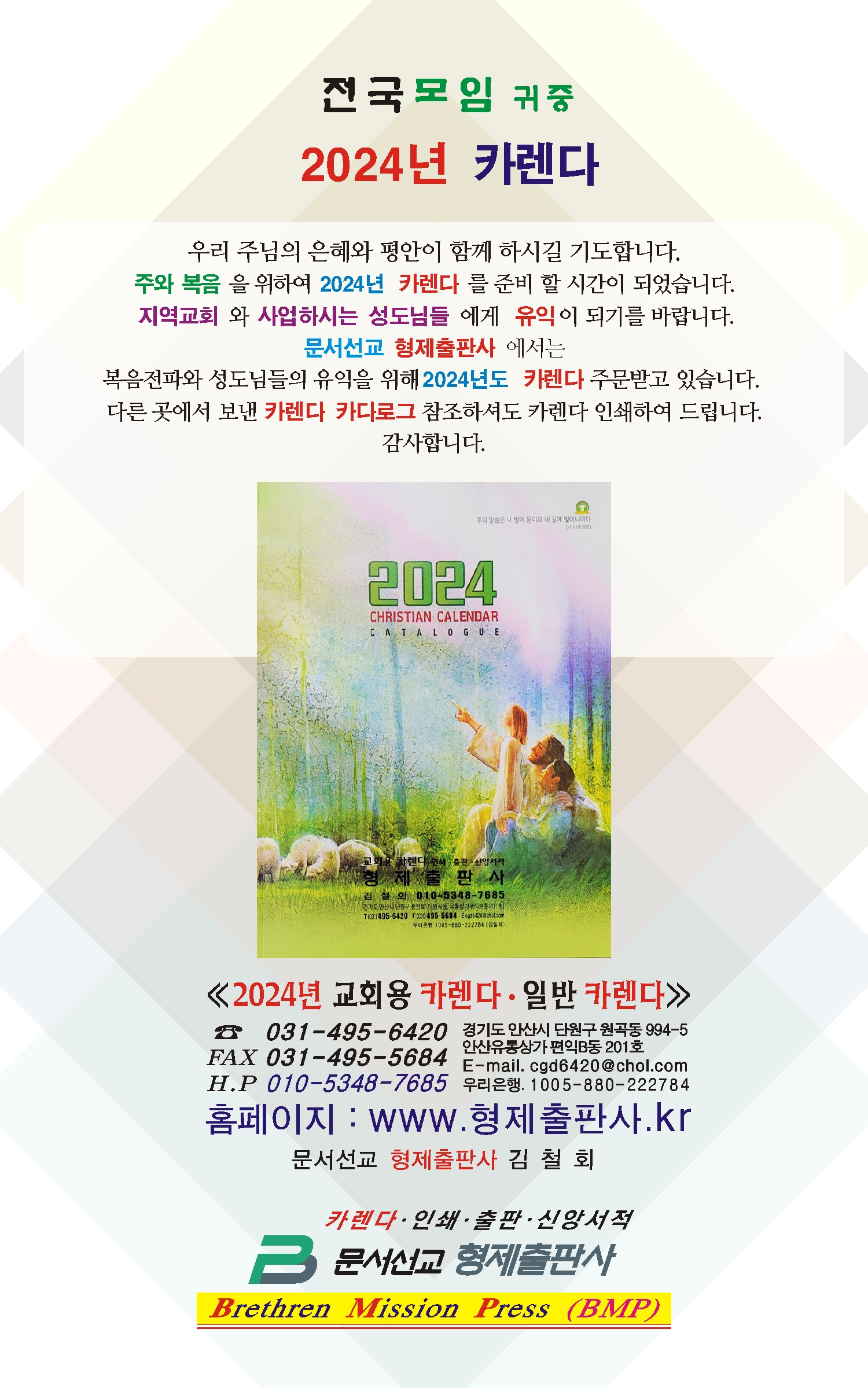 [안내] 2024 카렌다 - 교회용/일반용 [형제출판사]