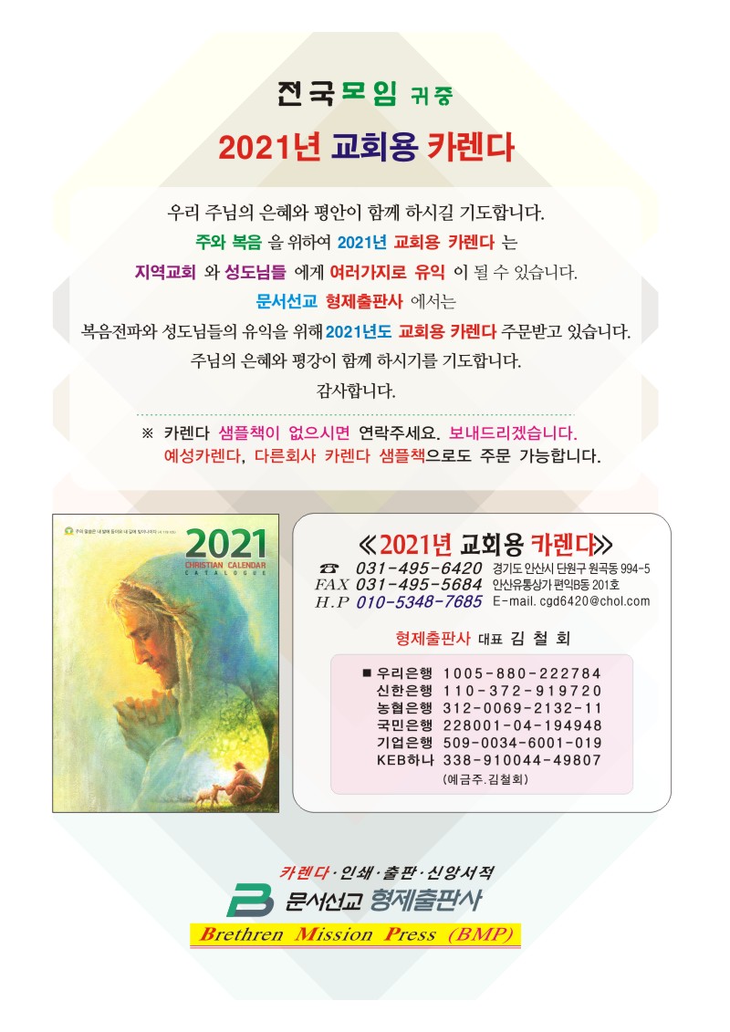 [안내] 2021년 교회용 카렌다 주문(형제출판사)